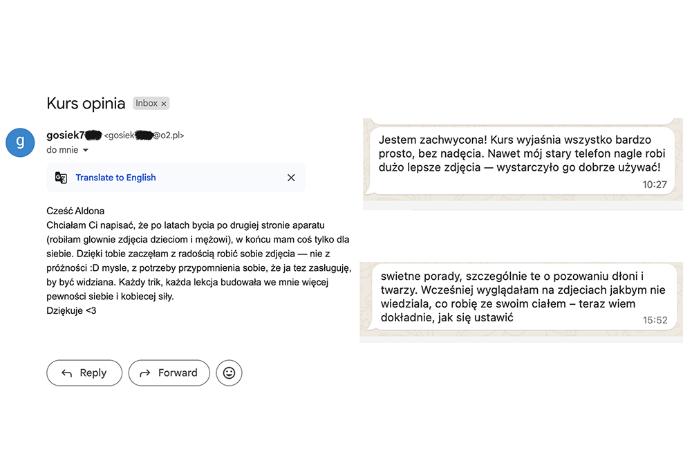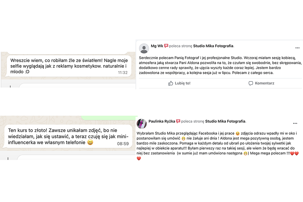 Zależy mi na tym, abyś była dumna z tego jak wyglądasz na zdjęciach – bez drogiego sprzętu i skomplikowanych ustawień. Wystarczy telefon i wiedza, którą Ci przekażę!